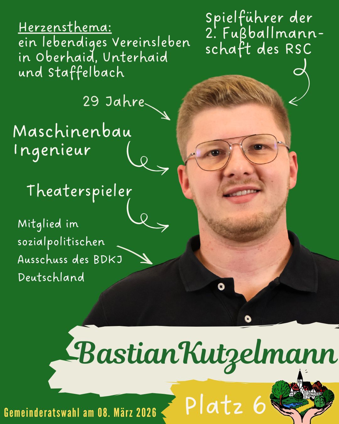 Teamgeist auf dem Platz und Engagement daneben. Unser U30 – Kandidat Bastian setzt sich ehrenamtlich aktiv für ein lebendiges Vereinsleben ein und möchte dies für alle Gemeindeteile noch weiter ausbauen. Für ein starkes Vereinsleben.